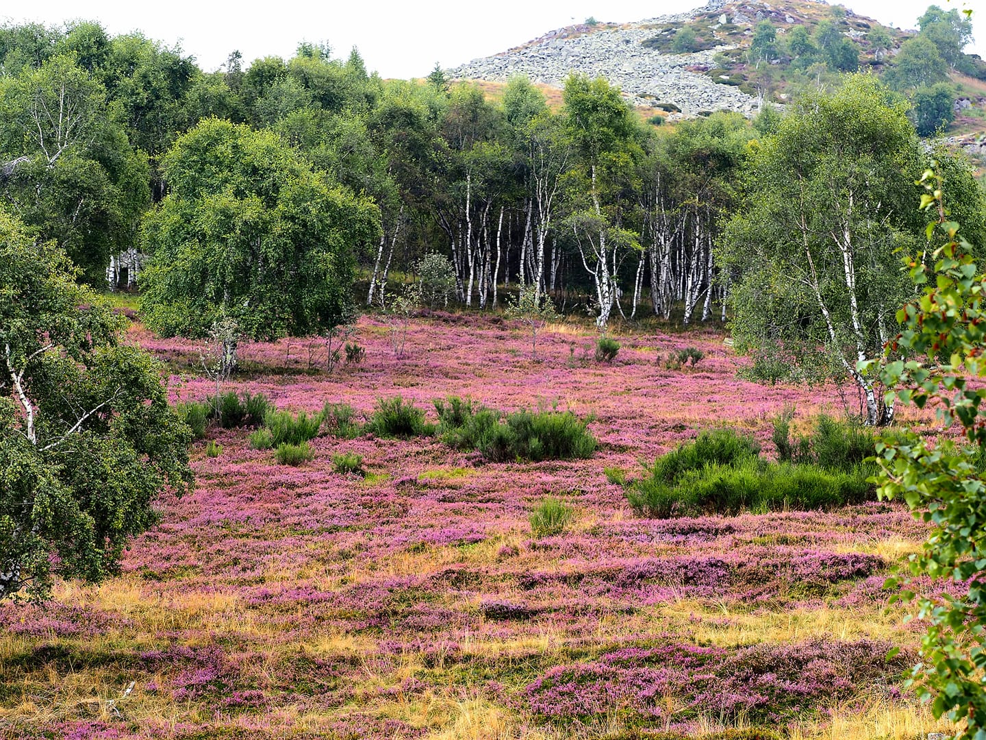 A settembre il paesaggio si tinge di rosa: distese e distese di calluna.